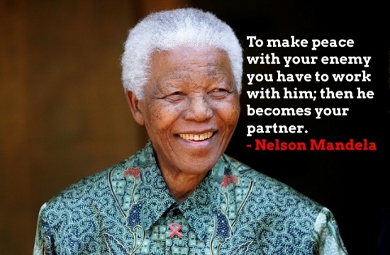 Nelson Mandela points out that resentment is like drinking poison and then hoping it will kill your enemies. To make peace with your enemy, you have to work with him; then he becomes your partner, adds Mandela.