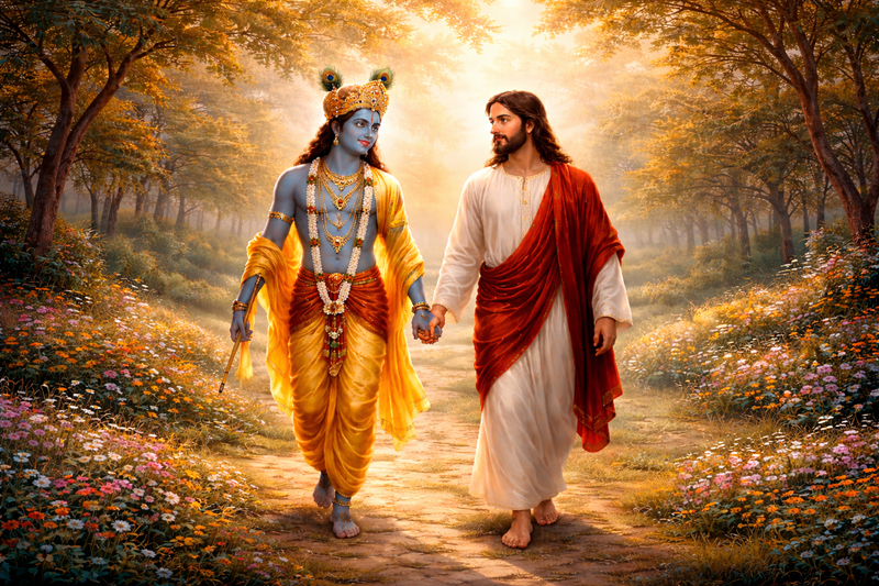 Perhaps Krishna and Christ do not need to return in a dramatic, visible form. Perhaps their union is already unfolding quietly—in moments of kindness, in acts of courage, in the growing awareness that humanity cannot survive divided against itself. Perhaps their shared spirit is already alive in those who dare to love beyond boundaries.