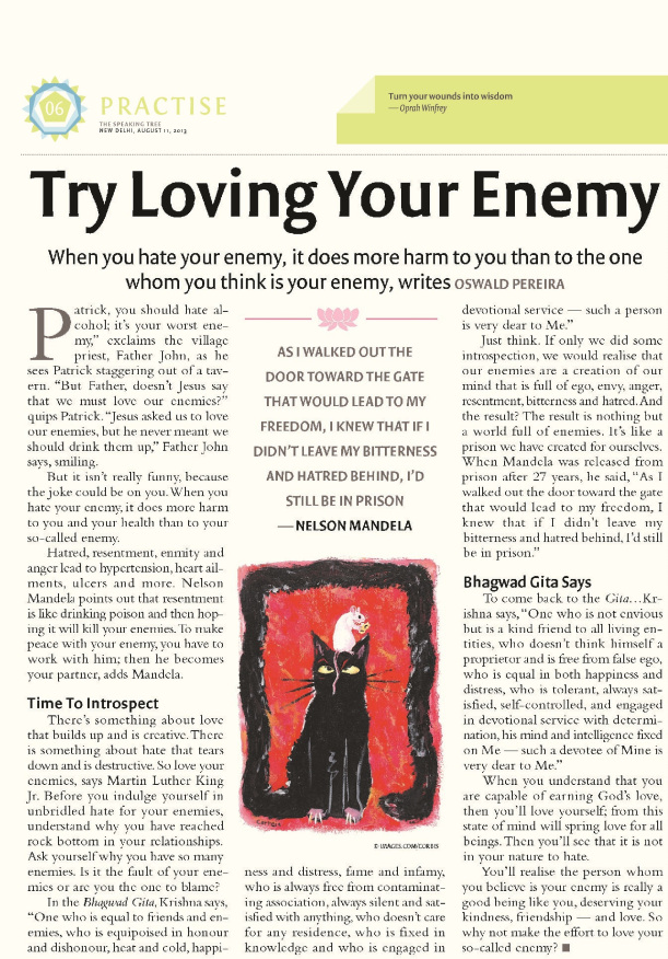 Oswald Pereira’s Lead Story in The Speaking Tree newspaper